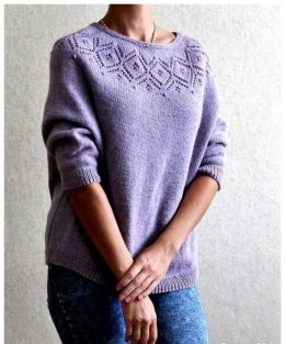 Выполненный из мягкой пряжи, он обеспечивает комфорт и тепло в прохладные дни. Интересные детали, такие как ажурные вставки и оригинальный воротник, подчеркиваю...