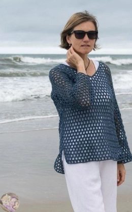 Его уникальная сетчатая текстура создает эффект легкости и воздушности, а свободный крой обеспечивает комфорт. Открытые рукава и боковые разрезы добавляют совре...