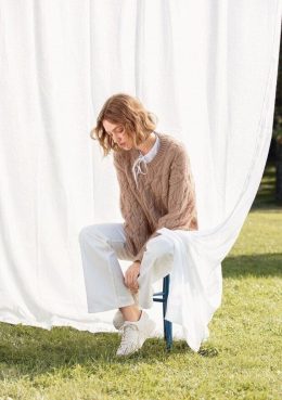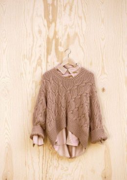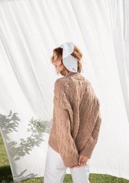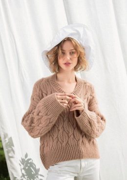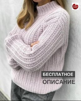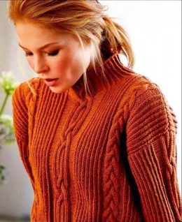 Пуловер с узором из кос и ромбов