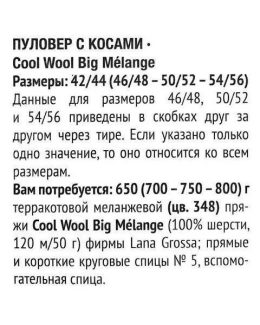 Уникальная текстура в виде объемных кос и рельефных полос придает изделию характер и стиль. Этот свитер не только согревает, но и подчеркивает индивидуальность,...