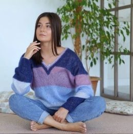 Его стильный V-образный вырез и контрастные полосы делают модель не только комфортной, но и модной. Этот свитер легко комбинируется с джинсами или юбками, добав...