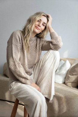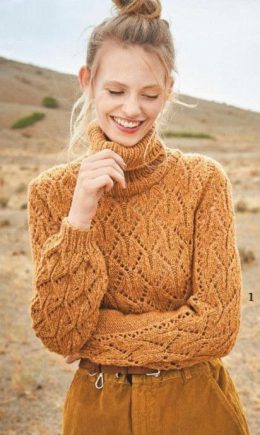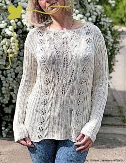 Уникальный узор с открытыми петлями придаёт изделию воздушность и стильный вид, а аккуратный воротник добавляет элегантности. Свитер отлично сочетается с джинса...