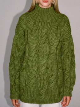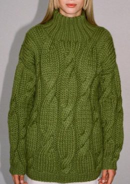 Этот свитер изумительного оливкового оттенка с объемной вязкой и уникальным рельефным узором станет настоящим акцентом вашего гардероба. Высокий воротник не тол...