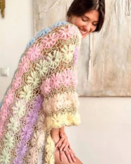 Яркие цветы в нежных оттенках придают изделию весеннее настроение, а крупная вязка обеспечивает тепло и комфорт. Плед идеально подходит для создания атмосферы у...