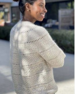 Этот свитер с уникальным ажурным узором и легкой текстурой станет идеальным дополнением к вашему гардеробу. Его воздушный дизайн и стильный крой подчеркивают же...