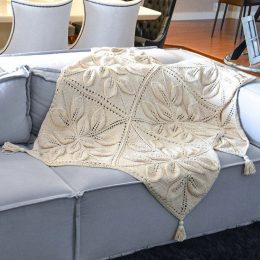 Уникальный дизайн с объемными листьями создает эффект объема и текстуры, добавляя уют в любое пространство. Плед украшен стильными кисточками по углам, что прид...