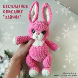 Очаровательный розовый зайчик, выполненный в технике вязания, станет прекрасным подарком и украшением интерьера. Мягкие ушки и нежные детали придают игрушке осо...