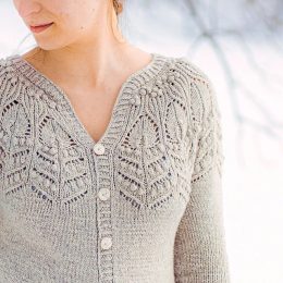 Этот изысканный кардиган серого цвета выполнен в классическом стиле с ажурным узором, напоминающим листья. Особый акцент сделан на декоративных пуговицах, котор...