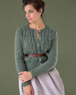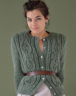 Этот великолепный кардиган, выполненный спицами, поражает своим элегантным фасоном и утонченными деталями. Изумительный зеленый оттенок подчеркивает стиль и гра...