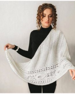 Восхитительная рукодельная шаль, выполненная в белоснежном цвете, притягивает взгляд своим изысканным узором. Прекрасное сочетание плотных и ажурных вставок соз...