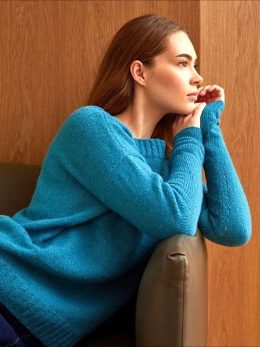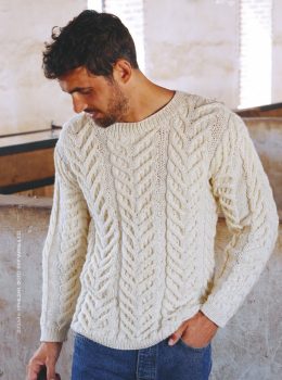 Этот вязаный шедевр в стиле ар-нуво пленяет сложной игрой кос и узоров, словно в нем переплетаются нити природы. Кремовый оттенок нежно обнимает, создавая уют и...