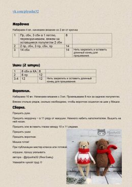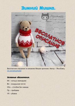 Очаровательный вязаный медвежонок выполнен в уютном стиле амигуруми. Медвежонок одет в стильный красный свитер с белым узором, который подчеркивает зимнюю атмос...