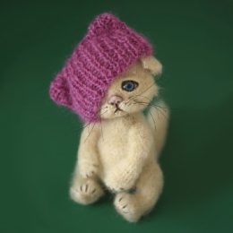 Это милое рукоделие - настоящий пушистый гангстер в розовой шапке! Очаровательный котик в стиле "уличной моды" носит вязаный головной убор, который слегка прикр...
