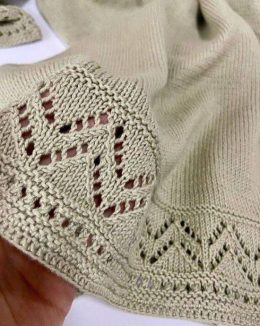 Этот изящный вязаный плед, выполненный в технике ажурного вязания, представляет собой пример ручной работы, уходящей корнями в древние традиции. Светло-бежевый...