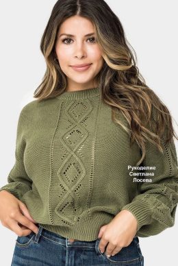 Этот уютный свитер ручной работы – настоящий шедевр вязания. Выполненный в нежном оливковом цвете, он идеально подходит для любого случая. Уникальный фасон с ге...