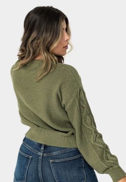 Этот стильный свитер выполнен в красивом оливковом цвете с изысканным ажурным узором на передней части. Модель имеет свободный крой и длинные рукава, что делает...