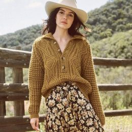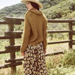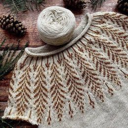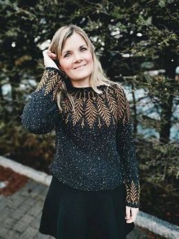 Этот вязаный свитер поражает своим изысканным дизайном. Темный фон изделия подчёркивает золотистый узор в виде ветвей, придавая ему элегантность и утончённость....