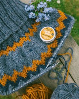 Эта стильная вязаная мманишка выполнена в благородных оттенках синего. Изделие украшено контрастной полосой, которая добавляет оригинальности и динамики. Мягкая...
