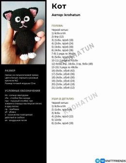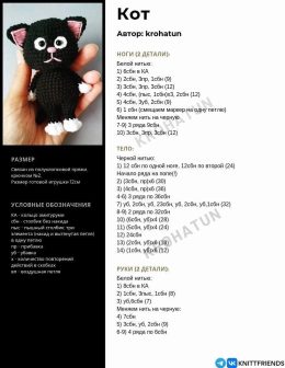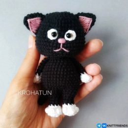 Очаровательный черный котик с розовыми ушками и белыми лапками. Мягкий и уютный стиль вязаного изделия подчеркивает его милый характер. Особенностью является ма...