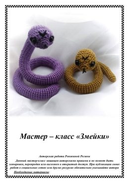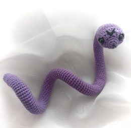 Эти милые вязаные змейки, выполненные в технике амигуруми, привлекают внимание своими яркими цветами и выразительными глазками. Фиолетовая змея с изящно завитым...