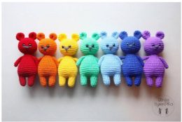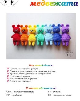 Эти очаровательные мишки, связанные крючком, представляют собой настоящее буйство цветов! Их яркий дизайн включает в себя все оттенки радуги: от насыщенного кра...