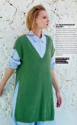 Этот изысканный вязаный жилет в стиле oversize, выполненный в свежем зелёном оттенке, окутывает вас лёгкостью и изяществом. Изделие с глубоким V-образным вырезо...