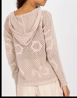 Эта вязаная кофта с капюшоном идеально подходит для тех, кто хочет добавить немного воздуха в свой гардероб. Легкая сетчатая структура создает эффектный узор, а...