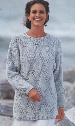Этот элегантный пуловер, связанный из легкой пряжи, станет отличным дополнением к вашему гардеробу. Нежный узор и свободный крой придают изделию особую изысканн...