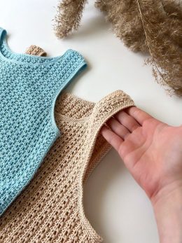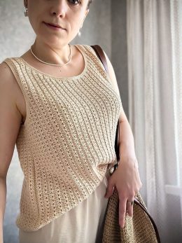Приветствую! Взгляните на этот замечательный топ, связанный крючком. Он выполнен из нежной пряжи, создавая изящный и воздушный узор. Обратите внимание на аккура...