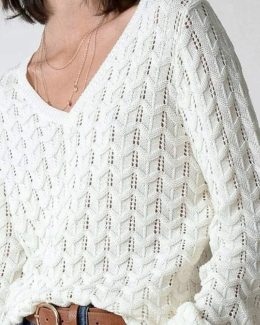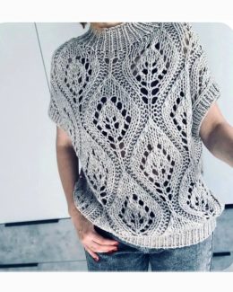 Это изысканно связанное изделие поражает своей текстурой и узором. Нежные ажурные петли создают эффект легкости, а глубокий вырез добавляет элегантности. Прекра...
