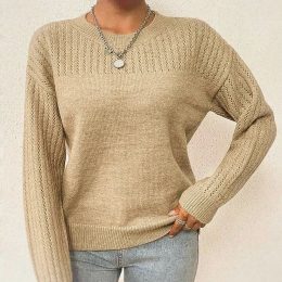 Этот модный свитер, выполненный спицами, станет идеальным дополнением к вашему гардеробу. Объемный фасон и изысканный узор придают ему особый шарм. Нежный светл...
