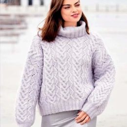 Какой восхитительный свитер! Эта уютная вязаная красота с высоким воротником и изящным узором идеально подходит для прохладных дней. Обратите внимание на свобод...