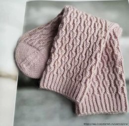 Маленькие зубчатые края на резинке плавно переходят в сложный ажурный узор, создавая образец, похожий на тонкую паутину. Эти вязаные носки, выполненные в нежном...