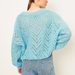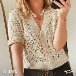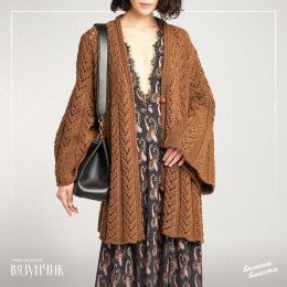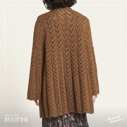 Эта вязаная красотка с ажурным узором словно приглашает на танец! Пуговицы – словно маленькие стражи, охраняющие ваш стиль, а широкие рукава добавляют нотку рас...