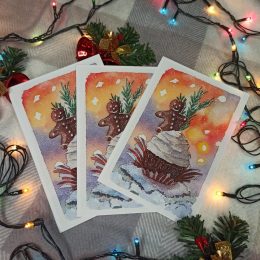 Восхитительные открытки ручной работы, которые сразу погружают в праздничное настроение. На переднем плане красуется очаровательный имбирный человечек, окружённ...