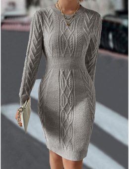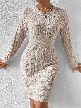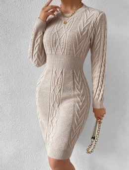 Этот свитер-платье — словно объятие, которое можно носить. Сложный узор переплетений и идеально подчеркнутая талия делают его настоящим произведением искусства....