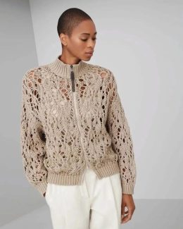 Эта великолепная вязаная куртка словно произведение искусства, где ажурные узоры напоминают кружевные окна, пропускающие солнечные лучи. Ее мягкий бежевый цвет...