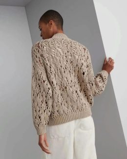 Пусть этот свитер согреет ваше сердце и плечи в самые прохладные дни. Мягкая текстура переплетается с изящным ажурным узором, добавляя нотку легкости. Высокий в...
