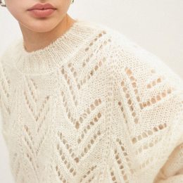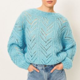 Приветствуем вас в мире пушистых приключений! Этот очаровательный свитер, связанный спицами, выглядит как небесное облако, а ажурный узор добавляет ему легкости...