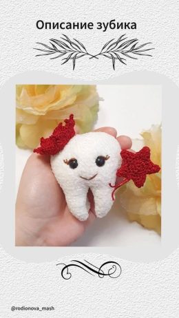 Пусть каждый ваш день будет таким же ярким и радостным, как этот очаровательный зубик! Он украшен милыми красными крылышками и звездочкой, добавляющими ему непо...