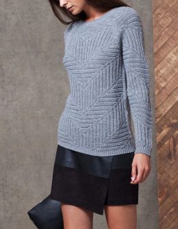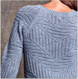 Сначала заметны аккуратные швы на плечах, которые плавно переходят в узорчатый мотив. Вязаное изделие выполнено из мягкой пряжи, образуя геометрические узоры, к...