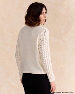 Когда вязальные спицы танцуют, создавая симфонию узоров, рождается этот уютный свитер. Изящный ажурный рисунок и нежный кремовый оттенок делают его идеальным сп...