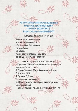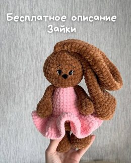 Познакомьтесь с этой очаровательной игрушкой! Этот милый зайка связан из мягкой пряжи и одет в нежное розовое платьице. Обратите внимание на его длинные ушки и...