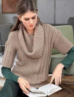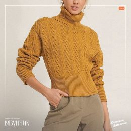 Пусть этот тёплый свитер согревает вас в холодные дни! Обратите внимание на изысканный узор кос и высокий воротник, которые придают особый шарм и комфорт. Этот...