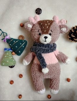 Познакомьтесь с этим очаровательным вязаным оленёнком, который обязательно добавит тепла и уюта в ваш дом. Обратите внимание на его милые рожки и стильный серый...