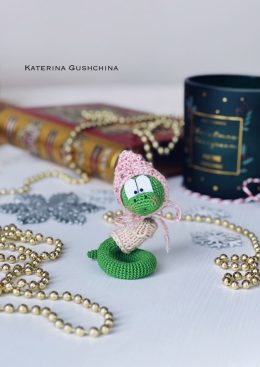 Вы только посмотрите на эту очаровательную вязаную змею! Она уютно устроилась в розовой шапочке и шарфике, готовая к зимним приключениям. Милые глазки и аккурат...
