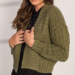 Познакомьтесь с этим восхитительным вязаным кардиганом спицами! Его текстура напоминает о пушистых облаках, а цвет - о лесной зелени. Незаменимая вещь в гардеро...