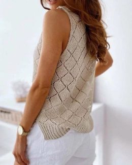 Привет, любители вязания! Эта стильная ажурная майка спицами выполнена с изящным ромбовидным узором, который придаёт лёгкость и воздушность. Вырез на майке доба...
