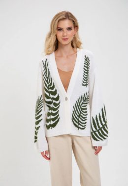 Помните, как бабушкины свитера всегда казались самыми уютными? Этот вязаный кардиган возвращает те теплые воспоминания. Его нежный кремовый фон украшен изящными...