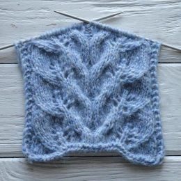 Этот изысканный вязаный образец спицами оживает благодаря мягким синим нитям, которые искусно переплетаются в узор, напоминающий ветви деревьев. Детали и тексту...